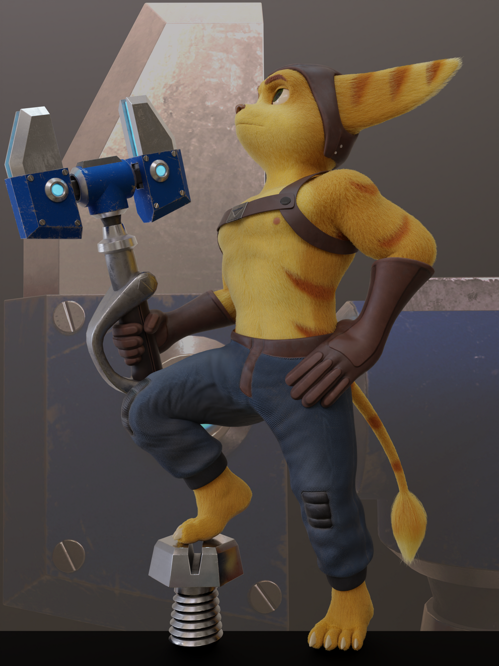 Anyway, Install the Rig tools first, he's setup for Blender 4.5, geonode fur so it may be a bit wonky as it's prone to errors. Bolt, wrench and a selection of clothing options included!